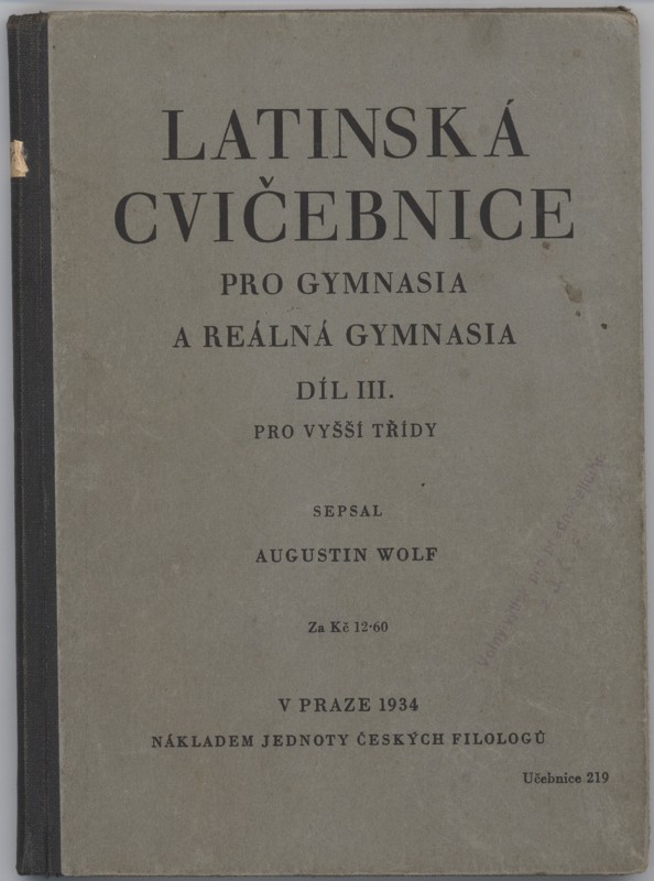 Wolf, Augustin: Latinská cvičebnice pro gymnasia a reálná gymnasia. Díl 3, pro vyšší třídy, 1934
