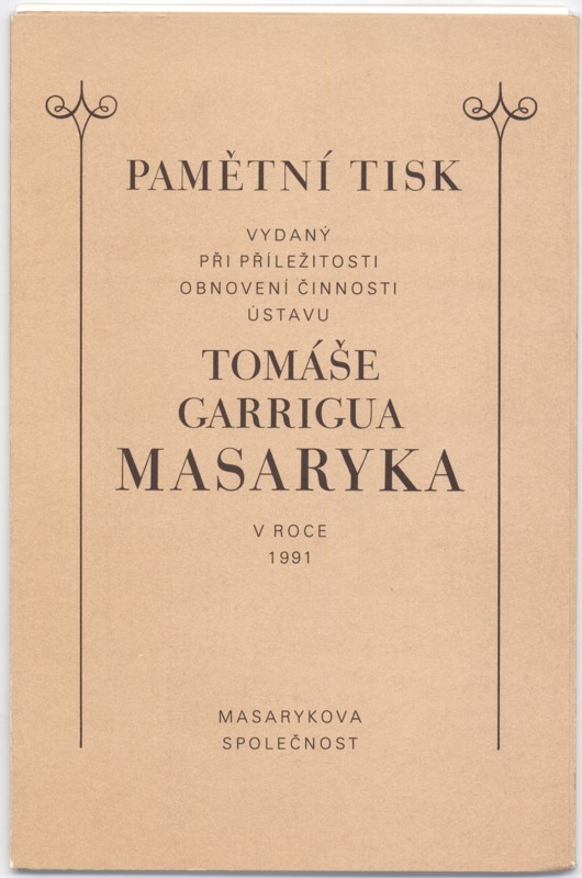 Pamětní tisk : vydaný při příležitosti obnovení činnosti ústavu Tomáše Garrigua Masaryka, 1991