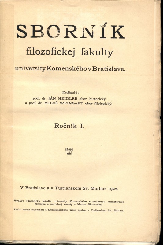 Sborník Filozofickej fakulty Univerzity Komenského v Bratislave. Ročník 1. Číslo 1 - 8, 1922