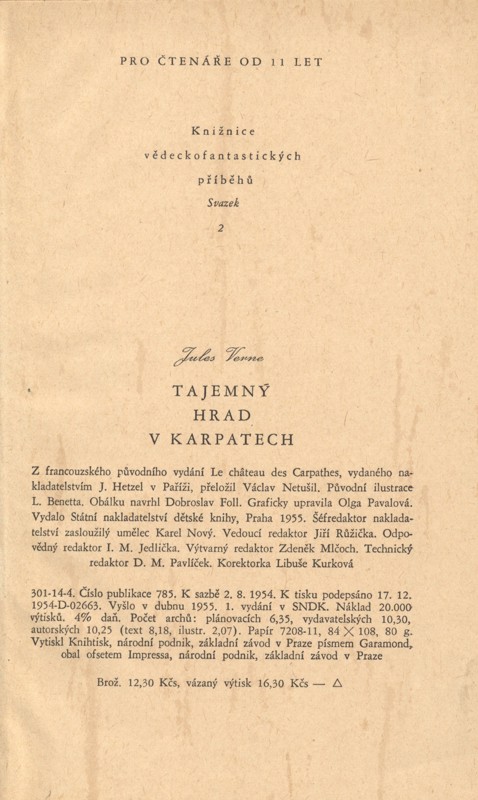 Verne, Jules: Tajemný hrad v Karpatech, 1955